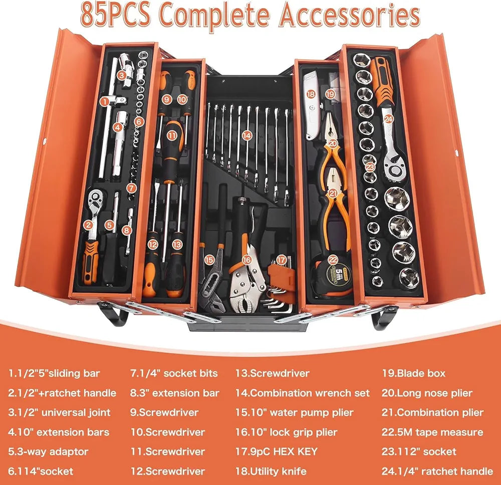 Η ΜΕΤΑΛΛΙΚΗ ΕΡΓΑΛΕΙΟΘΗΚΗ ΜΕ 85 ΤΕΜΑΧΙΑ είναι κατασκευασμένη από CRV και προσφέρει υψηλή ποιότητα.