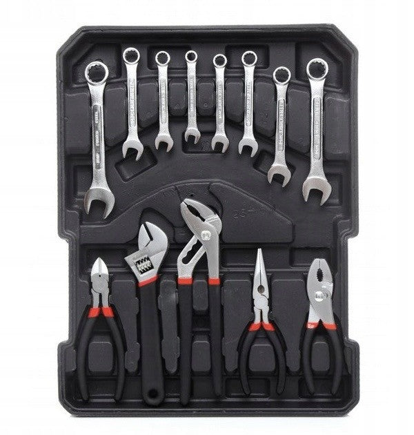 Η βαλίτσα με εργαλεία τροχήλατη αλουμινίου 189 τμχ είναι ένα πλήρες σετ εργαλείων, κατάλληλο για οικιακή χρήση και εργασίες σε συνεργείο ή εργαστήριο. Τα εργαλεία είναι κατασκευασμένα από ατσάλι χρωμίου-βαναδίου, ανθεκτικό και στιβαρό, διαθέτοντας εργονομικές αντιολισθητικές λαβές για ασφαλή και άνετη χρήση.